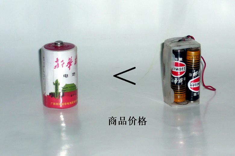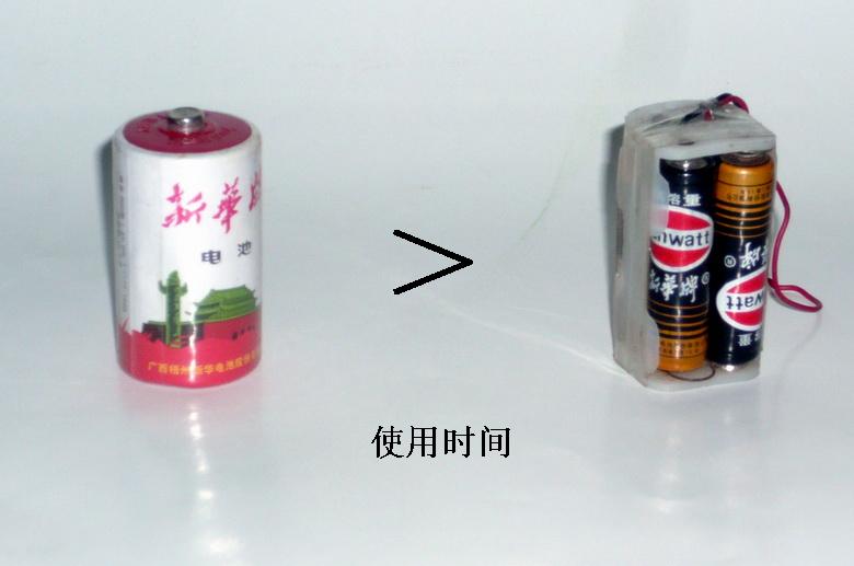 下面几张图片简单的说明了为什么要用一个1.5V大号电池替代四个1.5V小电池。