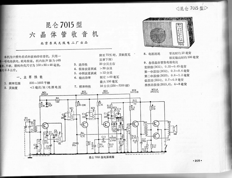 国内最早的1.5V收音机是70年代北京出的《昆仑7015A》