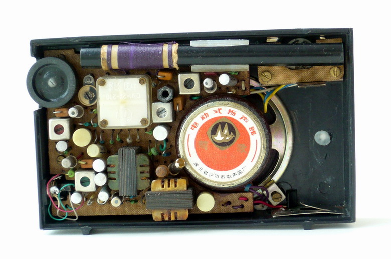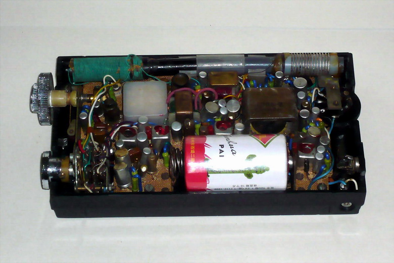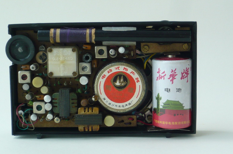 晶体管收音机的优点是体积小,携带方便。袖珍机一直是晶体管收音机的主要机型。受体积限制,袖珍收音机的电池一般都是采用小型或积层电池。虽然体积小了,但使用费用可不小。 中国的收音机技术多来自国外,到今天我国虽是收音机生产大国,但主要技术和关键部件仍然依靠国外。在收音机技术领域很少有中国人的贡献。经我多年研究,发现1.5V的晶体管收音机是我国独有的技术。首先要明确国外也有1.5V的收音机,但它的功能和我国的1.5V收音机是不同的。国外的1.5V收音机主要是为了减少体积重量才使用小的1.5V电池;国内的1.5V收音机则是为了节约电池的使用费用、又不增加收音机体积而使用大 1.5V电池的收音机。国外的1.5V收音机极少,更多的是使用6V、9V甚至更高的积层电池。我国早期生产的袖珍收音机也有很多使用积层电池的,但采用积层电池的收音机非常不适合当时的国情。积层电池价格较贵,而且使用时间也很短。过去我有一台4管来复式晶体管收音机,用一种6V积层电池,(体积和4节 1.5V电池相当)用几天就不行了。世界第一台晶体管收音机Regency TR-1 甚至还专门配备得力电池盒。