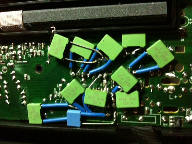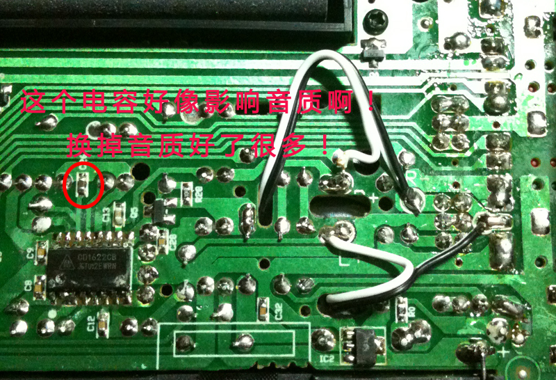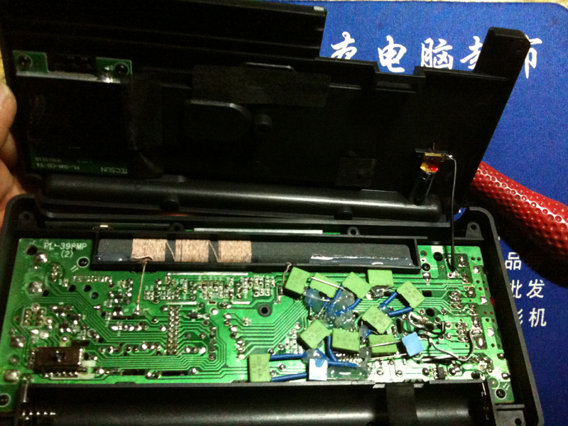 电路及维修 德生PL-398MP 拆机记 广播发烧网 2011-10-19 00:00 · 3035 0 找到红色标记部分的螺丝拆之: 要这样才可以取下主板~~ 前面板的正面(拆下才知道,显示屏面板和液晶屏幕是一体的): 前面板的背面,后面板忘记拍照了: 继续拆: 一分为二(正面&背面): 这个电容好像是0.1UF的,拆之换ERO电容,音质提升。 点赞 0 文章目录 × 推荐阅读AM/FM收音机的安装与调试德生PL757、R-9701、R-818、R-202T系列收音机原理、维修与实测数据浅析德生BCL3000的电路德生PL-380小打磨熊猫802-1收音机电路分析与维修收音机工作原理矿石收音机制作教程(一)新人试做TEF6686 DSP 收音机德生R-9701收音机电路原理解析给PL380无损加装外接中波天线功能 上一篇 湖北应城收听记录 下一篇 一个渐行渐远的时代——苏联乌拉尔牌晶体管收音机印象