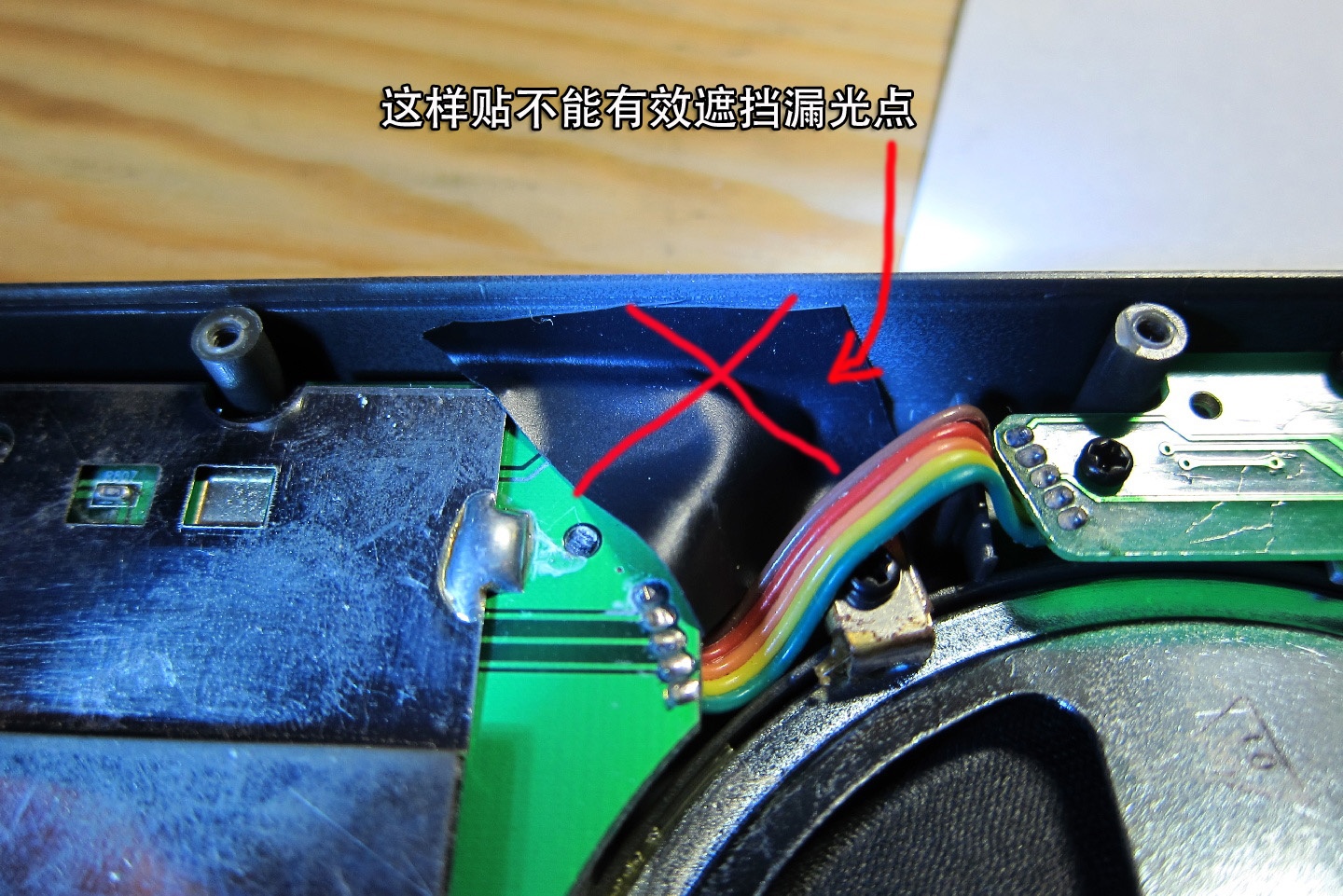 拆机过程中顺便把机壳顶部中央位置漏光的“瑕疵”也一并解决了,非完美主义者大可不必此番折腾。