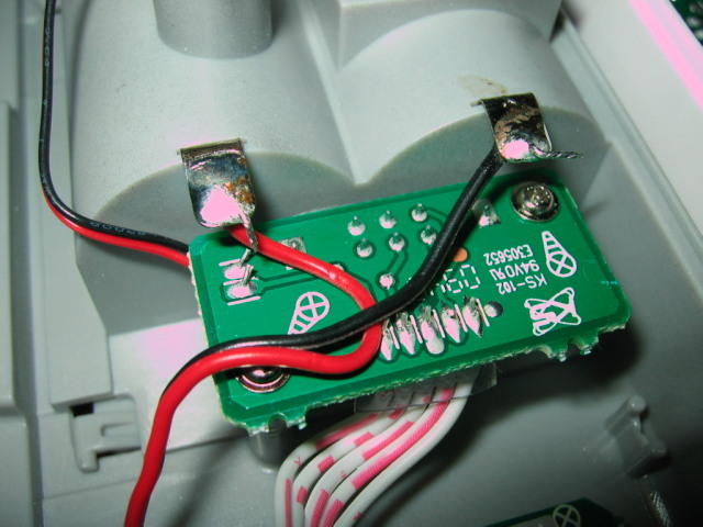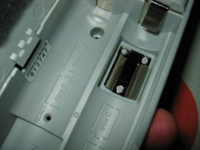 电池仓里有一个金属片,翘起来,四节电池中有一节骑在上面,背面还有一块电路板,不知这金属片有什么作用,是不是检测电池仓里有没有电池?或者里面还有个温度传感器,防止充电时过热?这机机可以用2号充电电池。