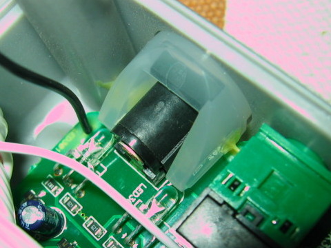 这是电源插座,有一圈透明塑料套,里面有两只LED,插上外接电源发出绿光,提醒,又好看。买鸡的时候考虑到已经有909变压器了,所以叫任先生发的不带变压器的货,省25块钱。用的时候发现,909的变压器极性和这鸡的竟然是反的。不过变压器有的是,顺手找了一个根德的,一样用。