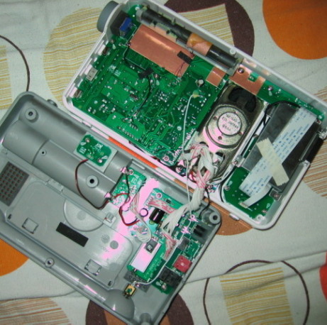 机器里用了一只长方形的喇叭,喇叭线是用插头插上的,不是焊上去的