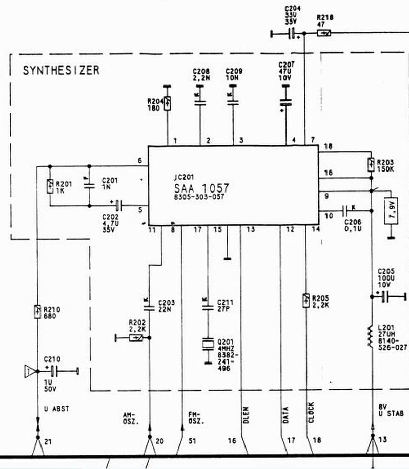 现在各波段转换时正确的。感觉故障大多应该是在PLL芯片SAA1057上。测量这器件外围电压也基本正确,出示波器探17脚无震荡!(见图二)立马判断这回应该真被我遇到了吗?