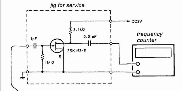 本可经仔细测试而排查的事情就自以为是,这不就是如我们常说滴经验主义害死人吗!因我这台电子电平表输入阻抗虽较高,但输入电容有43P,为减小测量手段对工作状态干扰,按手册给出的附加电路DIY了个附加探头作隔离。BBS接收所需的0.1KHz步进控制来自这里。这部分电路构成元件寥寥也就几枚,排除不是D503变容管绝缘问题后,再将通常不必清洗的电路板焊盘面这部分子震PLL部分器件全部拆下、清洗、焊回。
