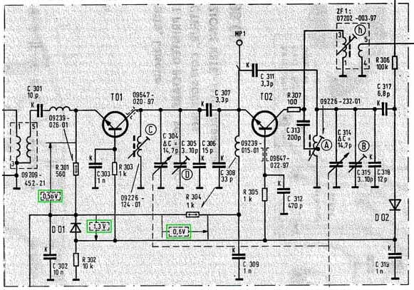 5、 这个C311出问题的概率应该是非常非常小的,这也就难怪上家修来修去修不好了!更换为国产瓷片电容,接上德国原装T02三极管,R304两端电压是稳定了,但仍不在正常值内,晶体管工作依然不正常。换上国产高频三极管后,各点电压回归到正常值。调节收FM又重新再现,德国蓬蓬声又回来了。