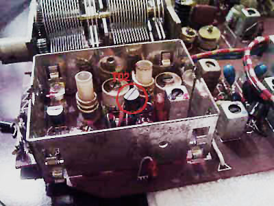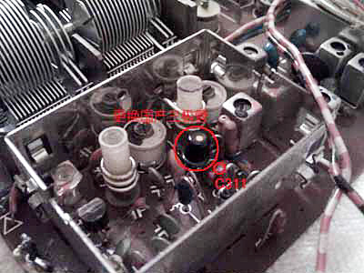 3、 原装机应该在高频部分用屏蔽罩罩住,这台收音机高频部分屏蔽罩已经不见了,虽然对于接收没有反映出有什么明显影响,但是有机会还是应该按照尺寸大小和形状做一个罩子配上去。