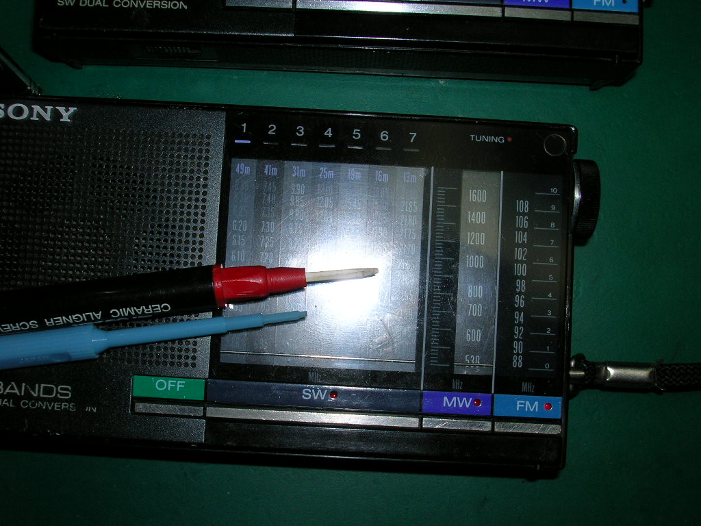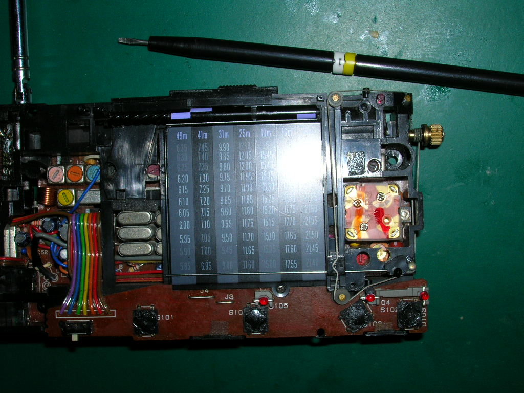 这是在本坛收的第二台二手4900,国际版,最大毛病是刻度严重不准,机械误差肯定有,上家打理后造成指针安装错误,手感变得非常紧。而且低端能听见107.7高端的声音,说明本振也有问题。图中指针已经调整好。SONY已经在FM那块刻度板最下端,印有一条不起眼的白线,供指针的机械行程对准。