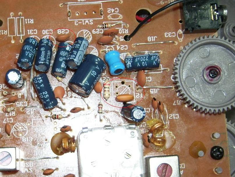 网海茫茫,搜到了其电路图,发现在音频的功放输人级竟然有一个对地的电容,容量是0.015u!!!