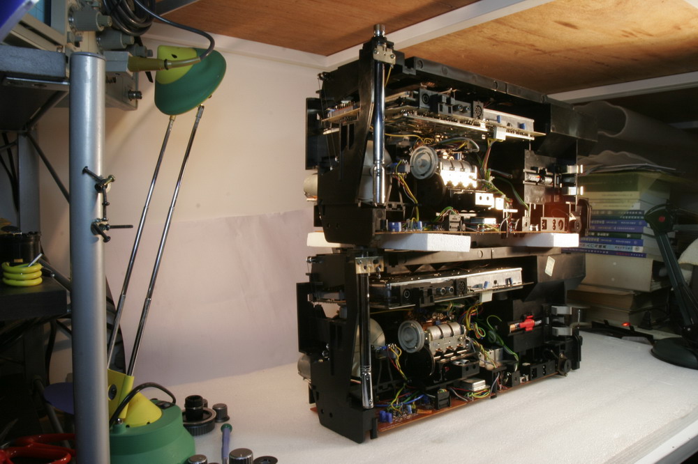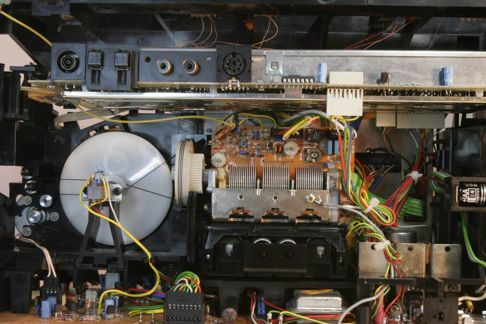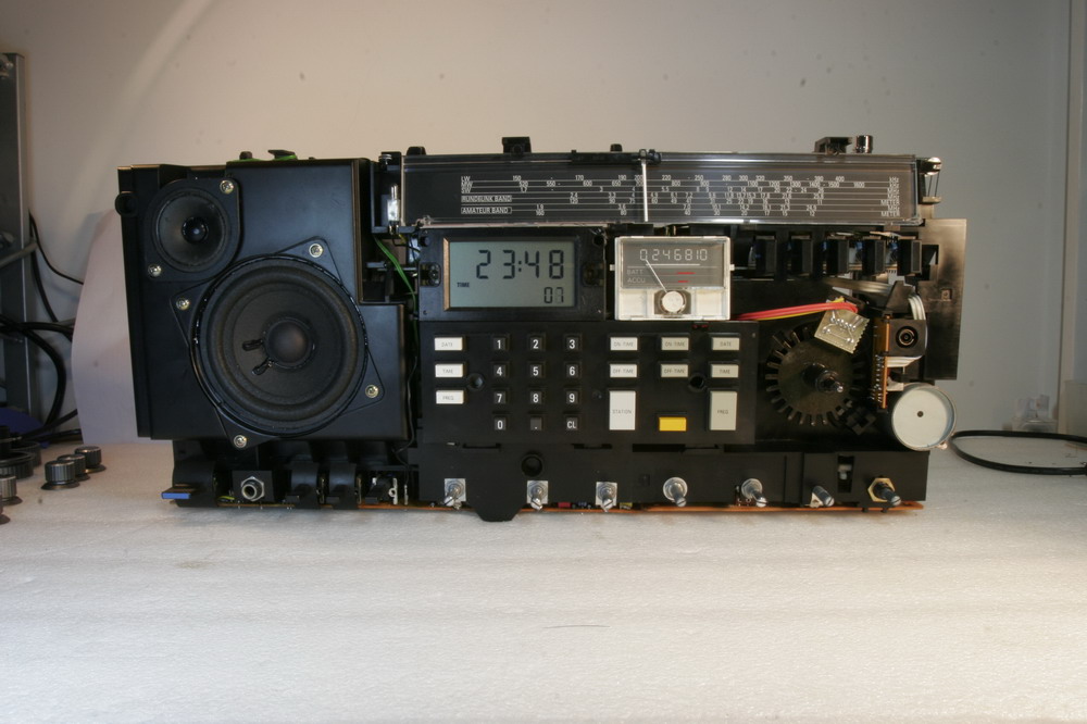 整台机器的高潮就是这里,这个机器的本振是PLL的,但AM部分的高频回路却是电容电感的,天线回路由CPU控制电动机带动电容电感,达到高Q值的高频回路