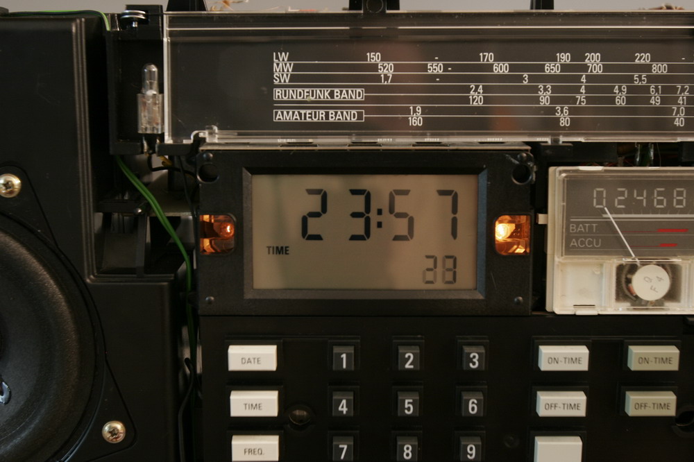 当机器插上交流电源但关机状态,会在显示时针的LCD两边微微的亮起小灯泡