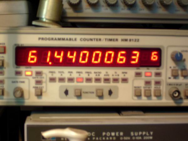 频率计接到【主板】的R1,得到读数,调整【锁相环板】的L2,使读数为61.4400MHZ