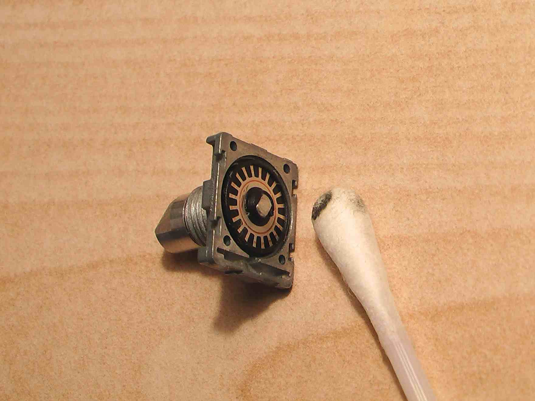 八、用棉签沾少量酒精,擦洗飞梭。晾干后,用少量润滑脂再涂抹在上面。