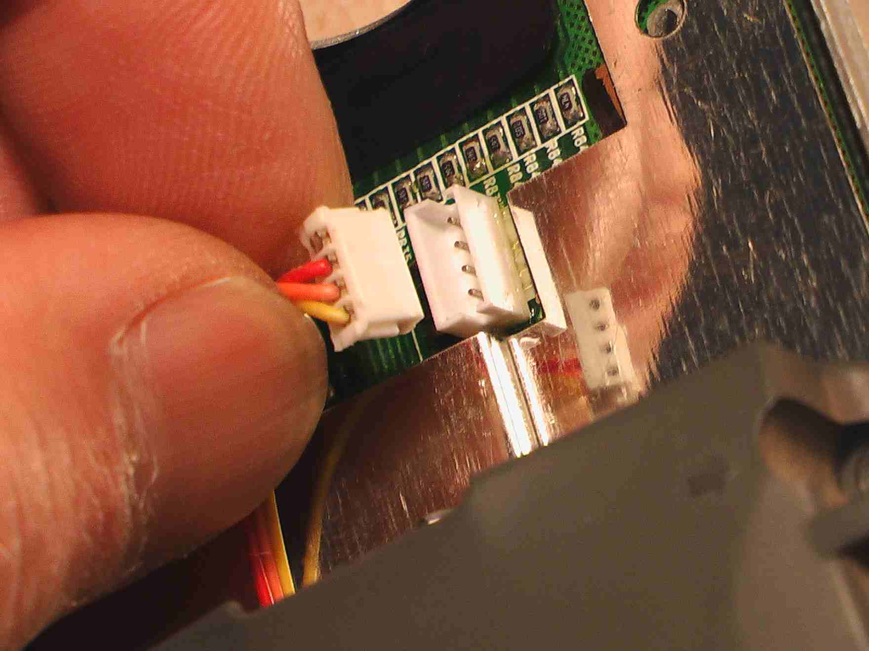 四、取出飞梭以后,找到连接飞梭另一头的白色插座,并小心拔出。