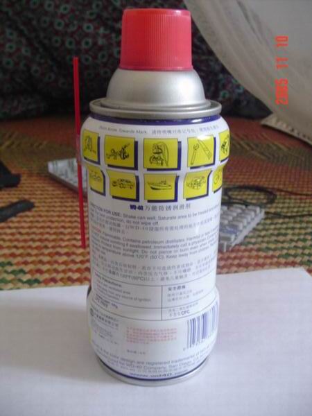 把喷管装上,方便把wd40射到小缝隙和小孔里去:)