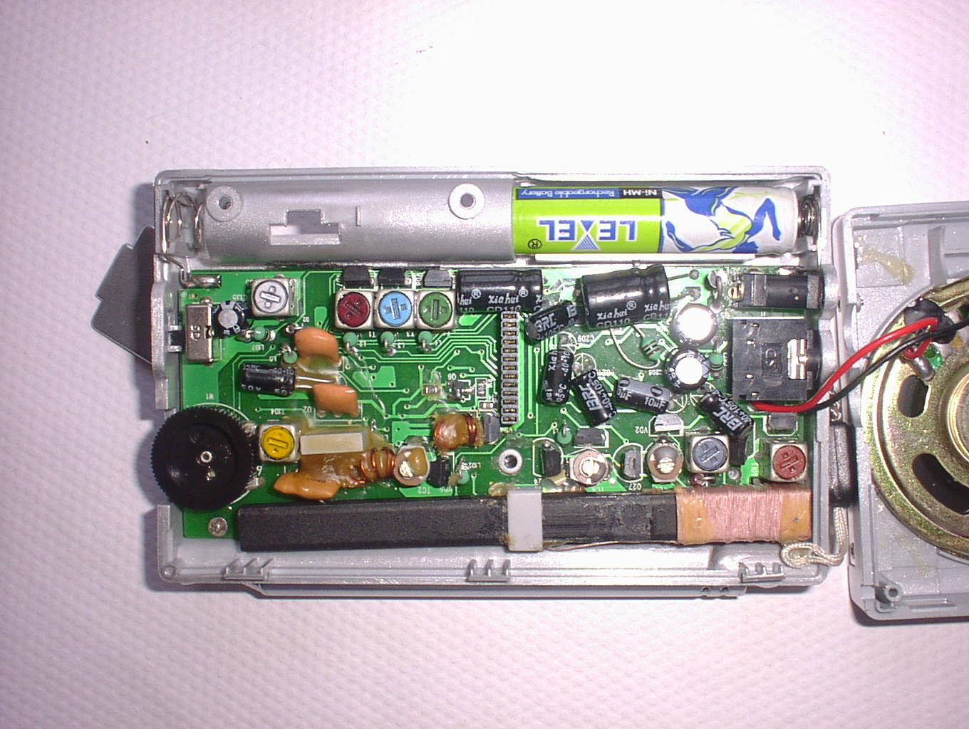 LOOK。下面是我摩好,调好的05机图。我同意上面几位朋友的意见,效果虽好,请无动手DIY的朋友,在开膛破鸡时,一定要三思而后行。开鸡就可能没有保修了啊,哈哈。。。开个玩笑。不过,告诉您一个小窍门:熟悉用电位器调音量的朋友知道,收音机电位器用不多久,调音量时就会发出讨厌“喀喀”的杂音,开机后在电位器上涂一点高级滑油是非常必要的!!!它可以保证您很长,很长一段时间摆脱调音量时就发出喀喀的杂音的烦恼!!!我所有用电位器调音量的收音机包括小日本SONY,AIWA收音机加了滑油后,到现在调音量时都没有发出一点喀喀的杂音。电位器加了高级滑油后,又的收音机用了两,三年了,甚至于五年后调起来还非常爽呢,没有一点杂音!