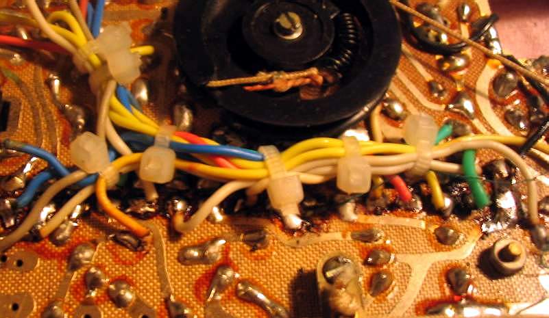 因本机波段开关上飞线众多,并且这些飞线多为高频信号引线,因此,装回去的时候,一定要想办法把这些线重新扎牢固,否则,在扬声器声音震动下,将影响高频信号,造成收音机性能下降!塑料扎线反正也便宜(我8元钱买了一包,共1000根!),多扎几根也花不了几个钱!