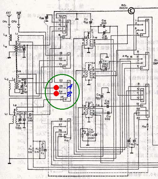 中波状态下,焊开“B”点引线,发现中波灵敏度好转,已经基本达到正常!再焊上“B”点,中波立即“安静”,这时,可以基本确定所怀疑之处成立!