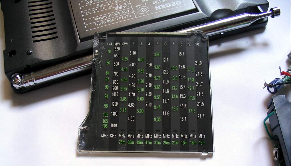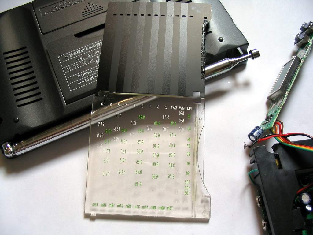 刻度盘的字是印刷在导光板上的,背面贴一层隔光纸,原来不知道刻度盘这样的结构,要不,把广播论坛的LOGO印制成后代替那隔光纸可能会很好看!