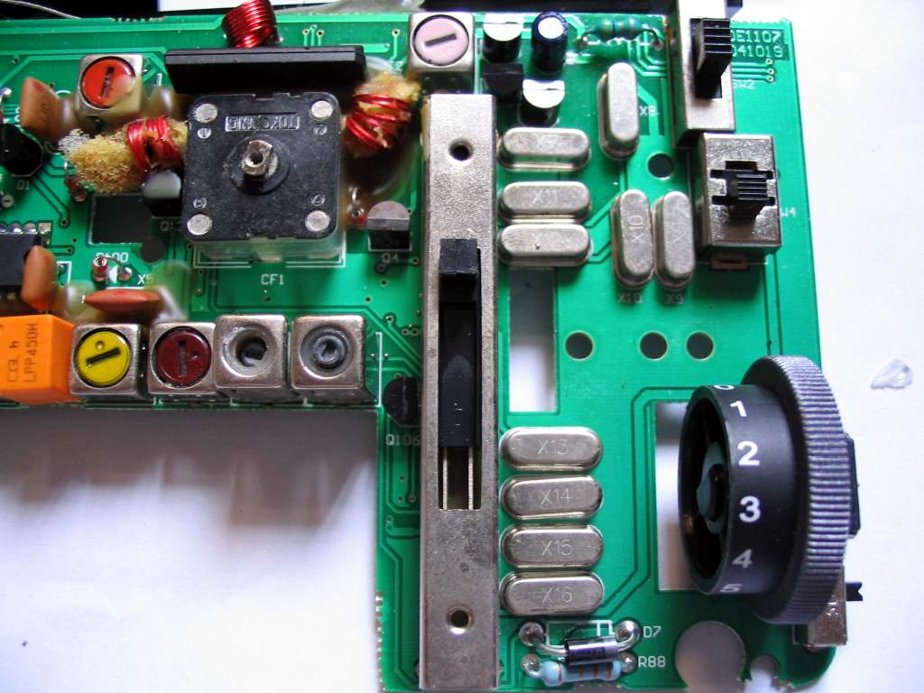 DE1107短波是二次变频的,短波第一本振使用石英晶体振荡,十个短波,十个晶振....