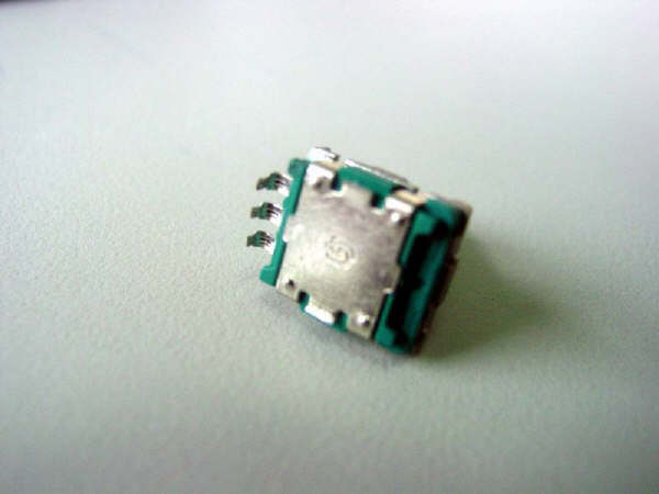 6.飞梭拿下来了。用小螺丝刀橇直飞梭后盖片的八字固定脚,取下后盖片。(如果你是在换新飞梭,尧尧寄的新飞梭可能不会有那组带插头的三根连线,你需要用电烙铁把旧飞梭的三个线头烫下来,再焊到新飞梭上。)