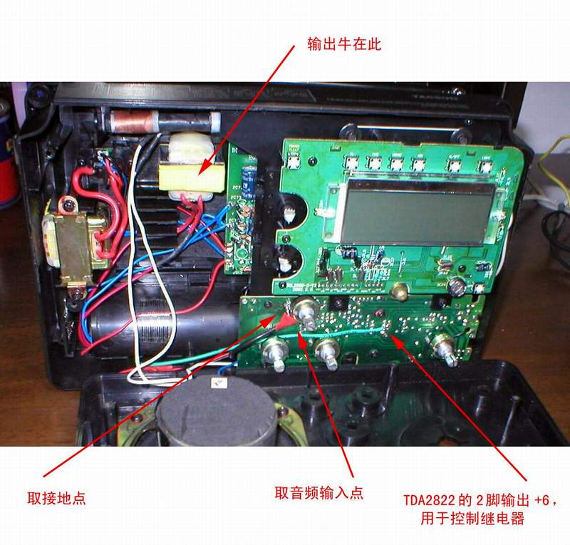 输出牛的固定:位置见图3,注意不要太靠近喇叭。用点强力胶或好点的压敏胶粘住就行,粘前要预先把在铁芯位置下面的黑纱防尘纸揭去一些。