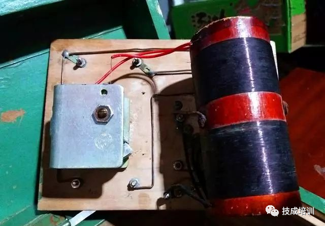 固定电容器多为纸质电容器,在矿石收音机上多数用于耳机的两端。这台收音机上没有安装,有个概念就行了。