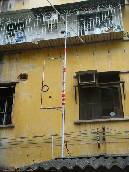 图片二:我的MOXON天线与半波偶极天线(上面的一横是半波偶极天线,下面的方框是MOXON天线)