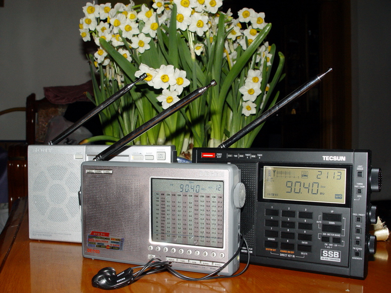 德劲DE1103、德生PL600、索尼7600GR三台机子俺一直都没有对其的耳机输出进行过测试,今晚闲暇有空,特对上述机子进行了聆听对比,因平时听机都很少用耳机收听,故手头上也没有什么发烧级的耳机可供测试之用,不过也没有关系,是金子就总会发光的,用一般的耳机可能更加容易分辨出优劣吧,俺就用了德劲收音机随机付送的耳机来进行对比测试,这样也不会因器材上的差异而出现偏差。要想测试对比好三台机的耳机输出音质,音源的选择也很重要,首先必须用FM段来进行,最好还能有不间断的音乐或歌曲播放,好在俺身处珠三角,要找好的测试音源并不难,我就选了90.4MHz的广东电台台山台作为测试音源,该台在晚上10点前都是不间断地播放音乐或歌曲的,而且信号特别强,播放的立体声音源很好,正好适合测试之用。言归正传,所需的测试耳机、音源都已经具备,立马对三机进行测试:先测试三机在关机状态下,耳机插入输出插孔时的噪音水平,这个测试也很重要,如电路上设计不好,当你头戴耳机拿起插头插入机子时,听到的不是美妙的音乐,而是那刺耳的“喀啦”声,那个难受,估计爱听耳机的朋友都深有体会,先试DE1103和PL600,两机在关机状态的“喀啦”声都相当,接触噪音比较大,感到不是很舒服,再试7600GR,“喀啦”声相对两德要轻很多,对耳朵的冲击在可接受范围。下面进行立体声音乐测试:首先将三台机子的音色开关切到MUSIC位置,频率调整到90.4MHz的台山电台,每台机子的音量输出大小都尽量保持一致,测试过程中通过不断切换每台机子的耳机输出,并进行了1个多小时的音乐收听对比,发现DE1103、PL600、7600GR三机的耳机输出背景噪声几乎不可闻,立体声音场定位准确,分离度不错,音色对比上,DE1103的音色偏向清新、欢快,高音亮丽,能给你丝丝入扣的感觉,低音部分略有不足,就好像17~8岁的年青人一样,活泼而充满朝气,但缺少稳重感,不太适合喜欢听低频的朋友选用;PL600的音色与7600GR较为接近,略有点偏暖,高音适中,华而不丽、收放自如,低音较DE1103来得圆润、丰满和耐听,就好比三十多岁的少妇,少了几分青春荡漾,多了几分成熟和温柔,使你沉醉于音乐之中,十分耐听。