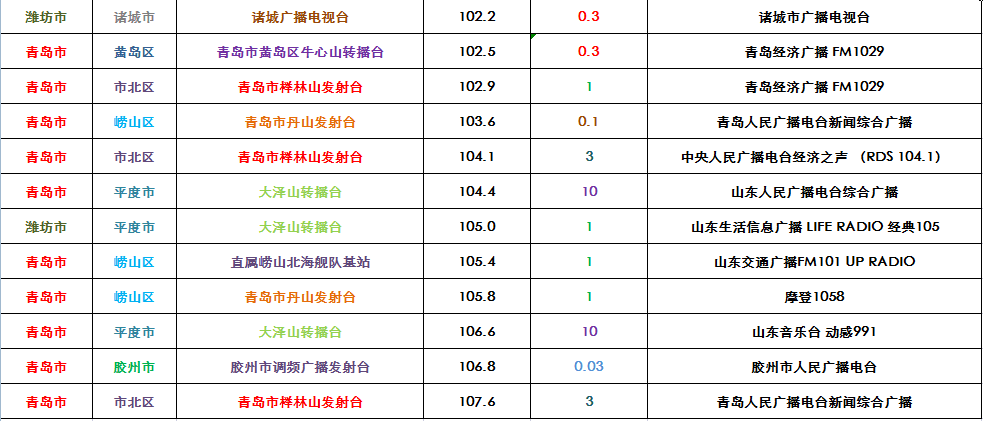 此列表仅供青岛市内四区(市南区 市北区 李沧区 崂山区)听友参考