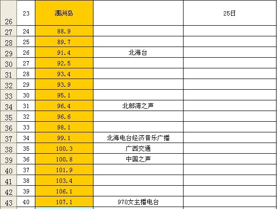 BCL 2011-9-24(25)北海银滩-海--涠洲岛-海上收听记录 广播发烧网 2011-10-08 00:00 · 2007 0 点赞 0 文章目录 × 推荐阅读珠三角九个城市以及港澳电台频率汇总浙江省各地区广播电台频率(修正)珠三角广播电台(按城市划分,标注主要的播音语言)中国主流城市FM频率表浙江地区广播电台频率全国各省市中波广播频率详细表中国大陆中波电台频率表 (上)西安市最新广播频率表南京地区广播电台频率一览表(最新)辽宁地区FM频率 上一篇 来说德劲DE1127 下一篇 DE1127简评