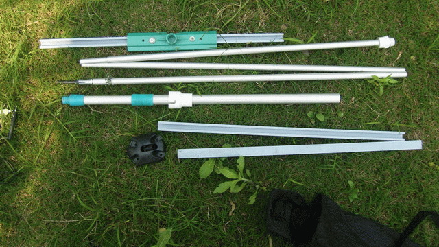 1.主立杆是长70厘米、直径1.8厘米的三折铝管,也是采用成品回来进行了加固、增强。