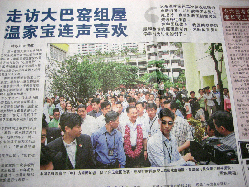 2007年11月22日,中国温家宝总理在会议之余,访问了大巴窑政府组屋,随行有外长杨洁篪,财长谢旭人,建设部长汪光焘。