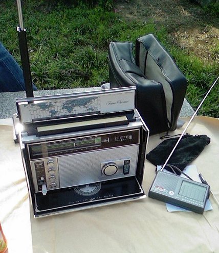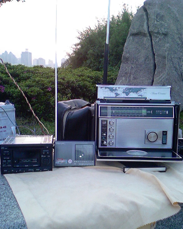 下午雨过天晴。闲着无事,约上本村的小陈 一起去湖边做DX ,手头没有什么机器,带了数字机1103 和晶体管ZENITH 7000 小陈带了NISSAN 短波车机。