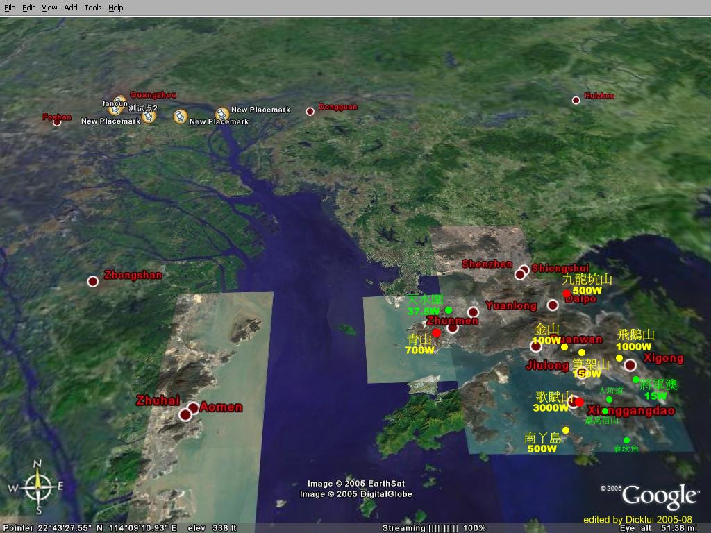 不少珠江三角洲的网友都希望接收香港的调频广播,不过香港的电台是以小功率多频率发射的,所以接收并不容易; 电台的频率亦众多,不容易记。网上流传的频率表又不易观看,于是我借了网友一幅珠江三角洲图片,加了一点工,再加上最新的频率表,供自己及大家参考。