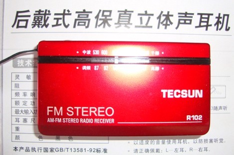 PL-100接收效果比R-102好,背噪几乎没有,这也许就是DSP优点所在,可避免多电台干扰,让自己不用换台随便穿行于都市的大街小巷之间,甚至接打电话时移动信号干扰喇叭共振也听不到。但收听节目时必须插耳机,否则外放没有声音。室内信号不好立体声效果亦不好,这就是用耳机来做天线接收的不足之处。