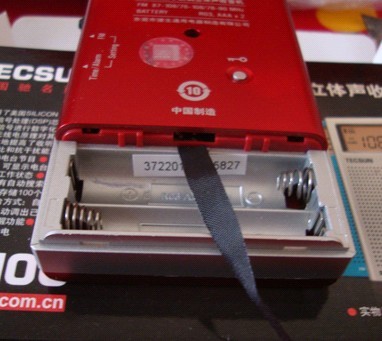 电力供应感觉还可以,二节南孚七号现在两格电刚退去,以每天收听2小时计算,估计收听20天左右。