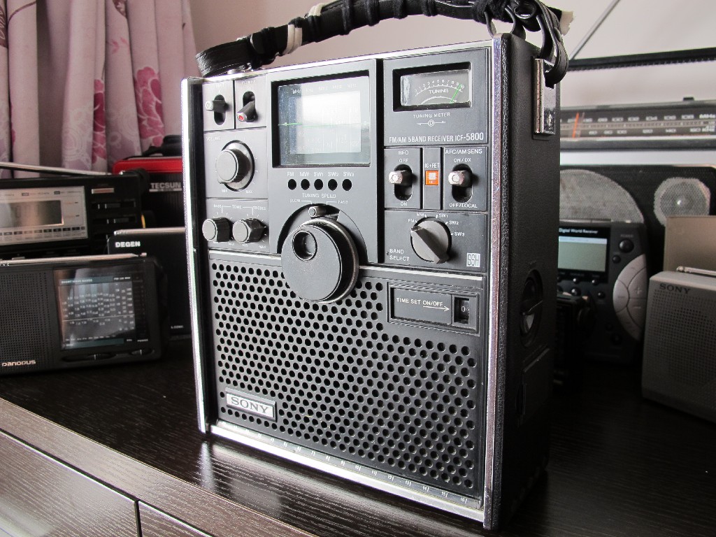 5800 现在已是我用鱼竿钓短波信号的主力机型,那种手指轻转电台一个个接连上钩的满足感绝对是每一个敌台爱好者最大的幸福——当然,在家里阳台上悠悠泡上一杯茶,用老德机自带天线听短波听出调频的感觉如果阿干有机会体验的话,估计幸福的阈值又会不停的往上涨了。详细机评见阿干拙作《穿越时空的对话——闲话极典小精灵r101和索尼ICF-5800的“收-音-机-玩-转”》