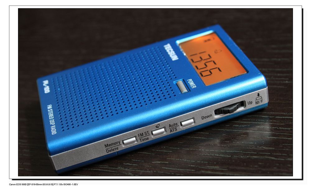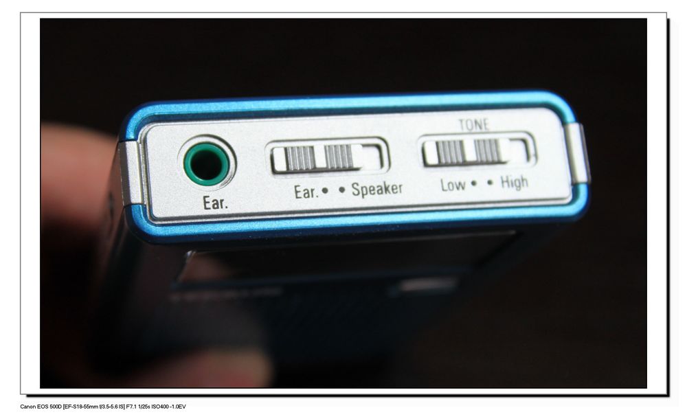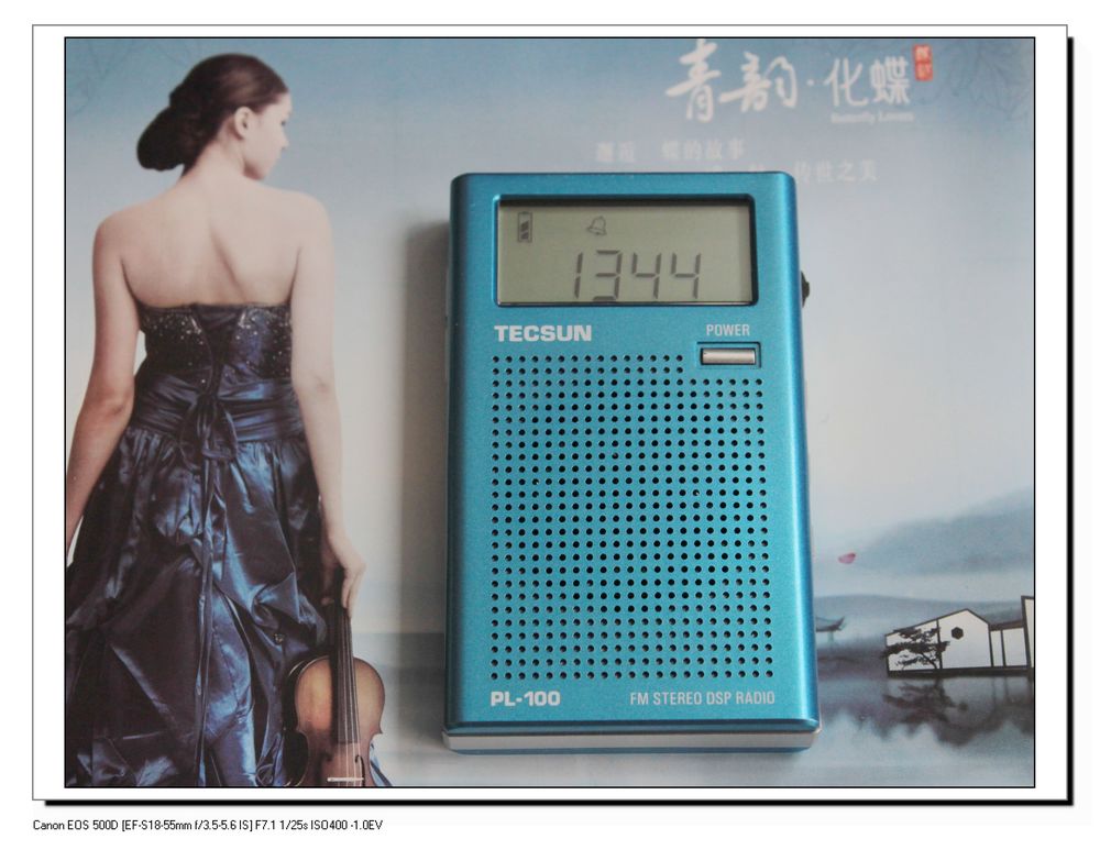 收听时必须插入耳机,否则是收不到任何信号的(这里远离市中心,接收环境不好,有空到市中心试一下:不用耳机能否收到信号)。灵敏度与110差不多,感觉PL-100是110的“外放型和显示型的版本”。只要信号好,无论是外放还是耳机都是很清晰的。当然外放的音质偏高,这么小的机器别指望与9700DX、660的音质相比,好在声音清晰。有高低音选择开关,可以根据嗜好选择。