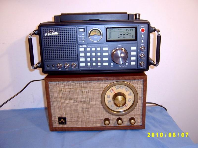 为了证明是否与电台的播出水平有关,同时也可以对比一下灵敏度,我手里并无德机,找出了手里几款比较熟悉的机器做AB比较,计有GE中波王,典型的晶体管机3T9,典型的电子管机上海161,以及德生的S2000,所有的机器均用交流供电,高低音调节均置于平直处。有调频的机器对比调频,无调频的对比中波,在同一地点收听同一节目。