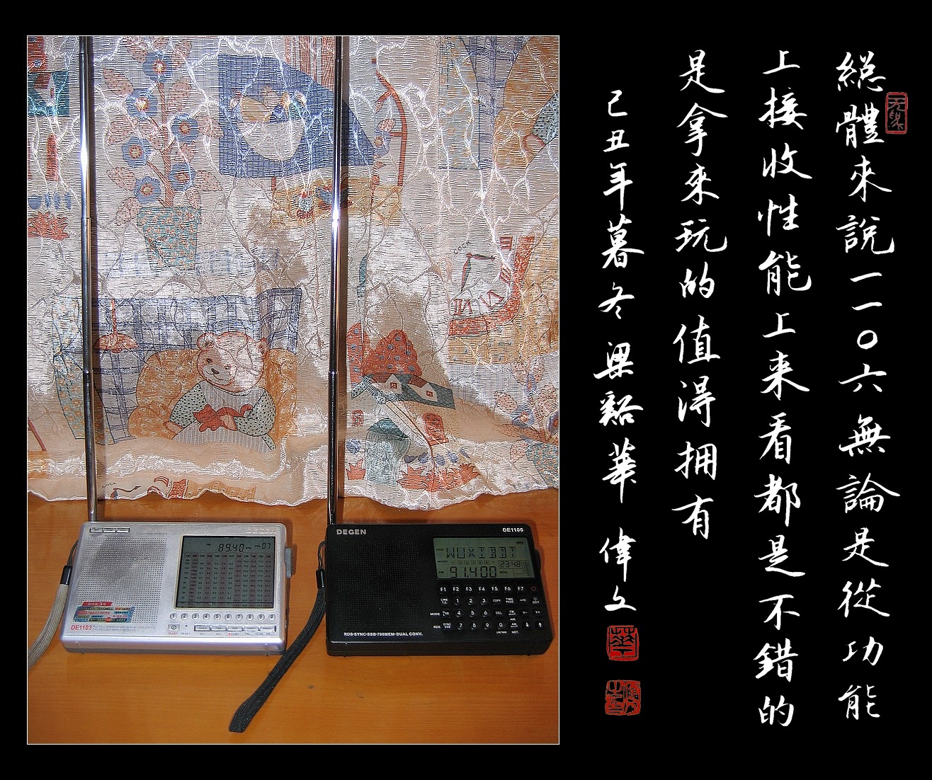 评测 “青涩橄榄,越品越有味儿”——我的1106使用感受 广播发烧网 2010-01-30 00:00 · 1919 0 点赞 0 文章目录 × 推荐阅读不吹不黑,说书的小草莓评测科多笙SR286收音机小议德生PL380收音机谈谈对网购的DP666收音机的初步印象100美元价位上很难被击败的机型,德生PL680收音机使用体验灵敏度高,但做工松垮无比,说书的小草莓评测德生GR98收音机新款汉荣达收音机HRD-747开箱简评山进DT-123收音机评测:一款底噪过大但相当成熟的机型德生BT-60蓝牙音响/收音机评测:外观其貌不扬,但有内秀永远有多远,记德生PL660日本松下PANASONIC RF-B65高级数字调谐收音机简单机评 上一篇 德生PL360欣赏 下一篇 打造自已的数调中波王