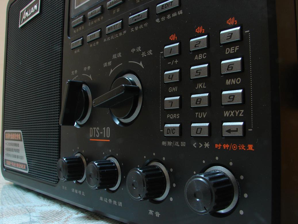 音质嘛各有个的特点,其中山进ATS-818ACS显的差了一点,比较平淡,感觉更像SONY那样注重广播人声,音量大但保真度不高,不太适合欣赏音乐。德生BCL3000看介绍用了4吋2瓦8欧姆的喇叭,实际感觉音量大,保真度高,把高低音调节都开足的话,音质稍微偏向低音。乐信RP2100和安键DTS-10的喇叭都是5吋5瓦8欧姆,功率充沛,音质甜美剔透,高低音比较平衡,非常符合我的听感取向。还有一点必须提一下,四台机器中德生BCL3000和安键DTS-10在使用交流市电时有很大的背景交流声,小音量的时候非常明显,相比乐信和山进这方面做的很好。