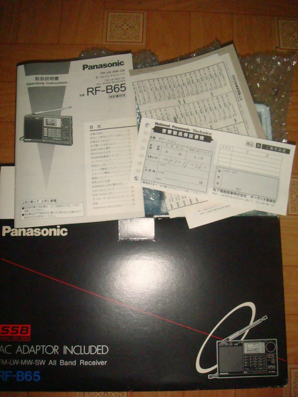 先介绍一下B65吧。松下公司出的机子根据销售地区的不同,出了几个不同的版本。有带航空波段的 NATIONAL RF-B65的,也有PANASONIC RF-B65D、PANASONIC RF-B65L,其他就不知道了,我还碰到过有的B65没有手提绳接口的。还有,大部分松下B65的FM频率是87.5-108,但我这台是76-108的,外壳背面有的标注英文,有的标注日文,我这台型号是B65。