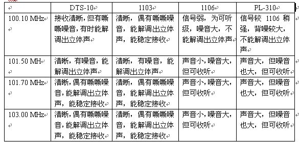 【目的】对比DTS-10、1103、1106、PL-310接收FM、MW、SW波段的效果