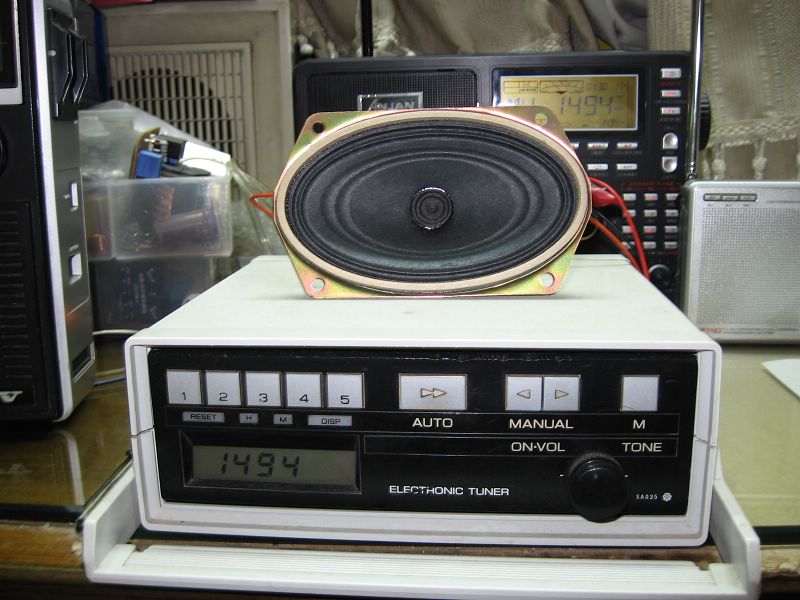 一不做二不休将纯AM车机取了一台出来比武,SANYO的F7100A,用铅酸蓄电池作电源,用磁棒线圈初级接天线端,同样将以上频率再收了一遍,声音清晰噪音中等,音质也不错,厉害!跑题了。