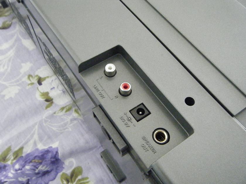 SAT800采用了普通的4英寸喇叭,也没有配套的箱体设计,设置了独立的高低音调节旋钮,但喇叭音域宽广度不够,音色也不够饱满,整体感觉表现显得偏于沉闷干涩,高音不清晰。早先就有高手仅仅置换了一只百十元的4寸喇叭,而未对音频电路做任何改动,表现就足以用脱胎换骨来形容,可见这只“马鞍”的确漏野了点(“漏野”这个词还是我来到广西之后才听说的,很神奇的词语)。机器在背后设置了音频输出和外界喇叭接口,方便录存广播节目或者换用更高级的喇叭,遗憾的是没有音频输入功能,无法将SAT800的喇叭当作外接喇叭。