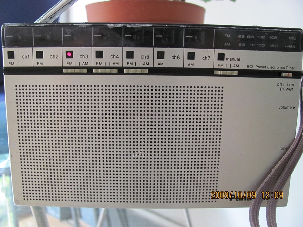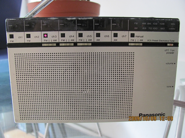 前二天从3罗处购得松下PANASONIC RF-088电调式收音机,因为该机品相差,并且缺少电池盖,当时很久不见有人买。广坛有这种现象:没有短波的机子不好卖,可是我们在大城市,在水泥钢筋的楼房里短波和中波几乎没有什么可听,如果硬要听,就是二个字:难受!我平时听FM比较多,所以我就是觉得这个机子很特别,特别在哪里呢?在于它的调谐系统。