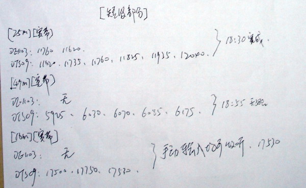 短波部分由于容易受到敲锣打鼓的影响,而且信号也不太稳定,如果没有好的天线,现在想好好的享受下SW简直是太难了,所以我现在很少听SW了。在测试的时候,我还特地打开了广坛的即时SW广播频率表,但是发现与实际的接受有些出入,没有仔细记录,最后我分别选择了,25m波段(记得广坛里有人说过,25m是个好波段,这句话我记住了,^^),49m波段和16m波段进行了测试。由于时间的原因,仅仅在天线全部拉出用宽带接收的情况下做了自动搜锁的测试,结果嘛,又是让人大跌眼镜,hoho~~~~,注意,在测试的时候我可是让二机在同一地点同时从相同的频率开始测试的哦,所以不用怀疑时间差造成的信号的不稳对二机造成的不公。^^