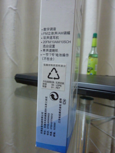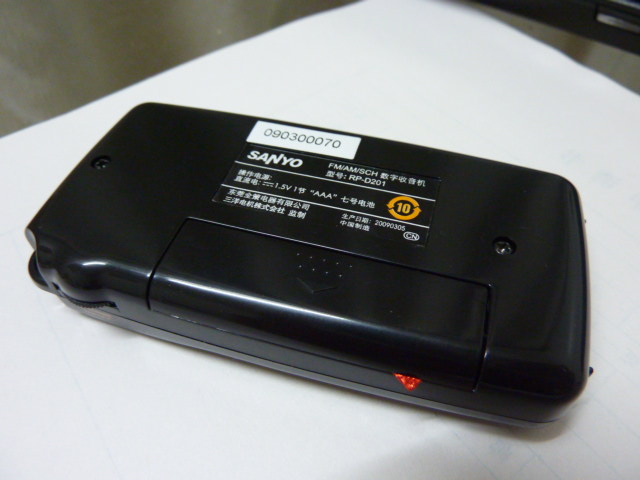 一直喜欢小机器,包括小收音机,umpc,ppc,palm等小东西,从小到大买了很多,前几天在卓越亚马逊上看到一款三洋的小机器,型号是rp-d201,我拿尺子按照它的尺寸量了下,感觉很小,又和德生的r101小机器的尺寸对比了下,r101尺寸是47宽x86高x18厚,d201尺寸是:45.590.218mm,仅长度比r201长4mm左右,宽还小2mm,比r101好的地方是带一个喇叭,而且是数调的。